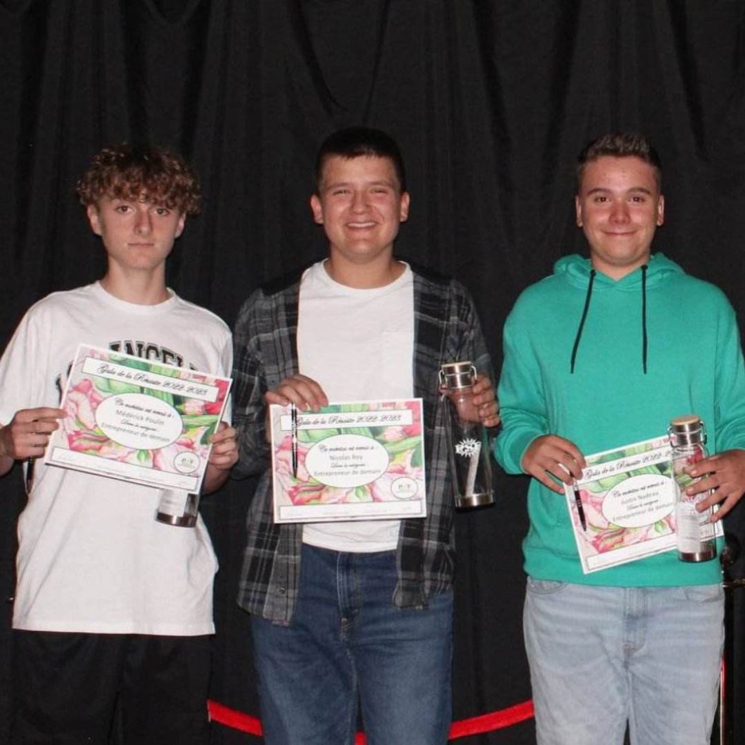 Dans le volet Créativité et initiative, l’école des Bois-Francs avec son projet «Vente de paniers de légumes biologiques et locaux», la polyvalente Saint-François avec son projet «King Bait» et le CIMIC avec son projet «Machine à savon» ont remporté respectivement une bourse de 300$.
